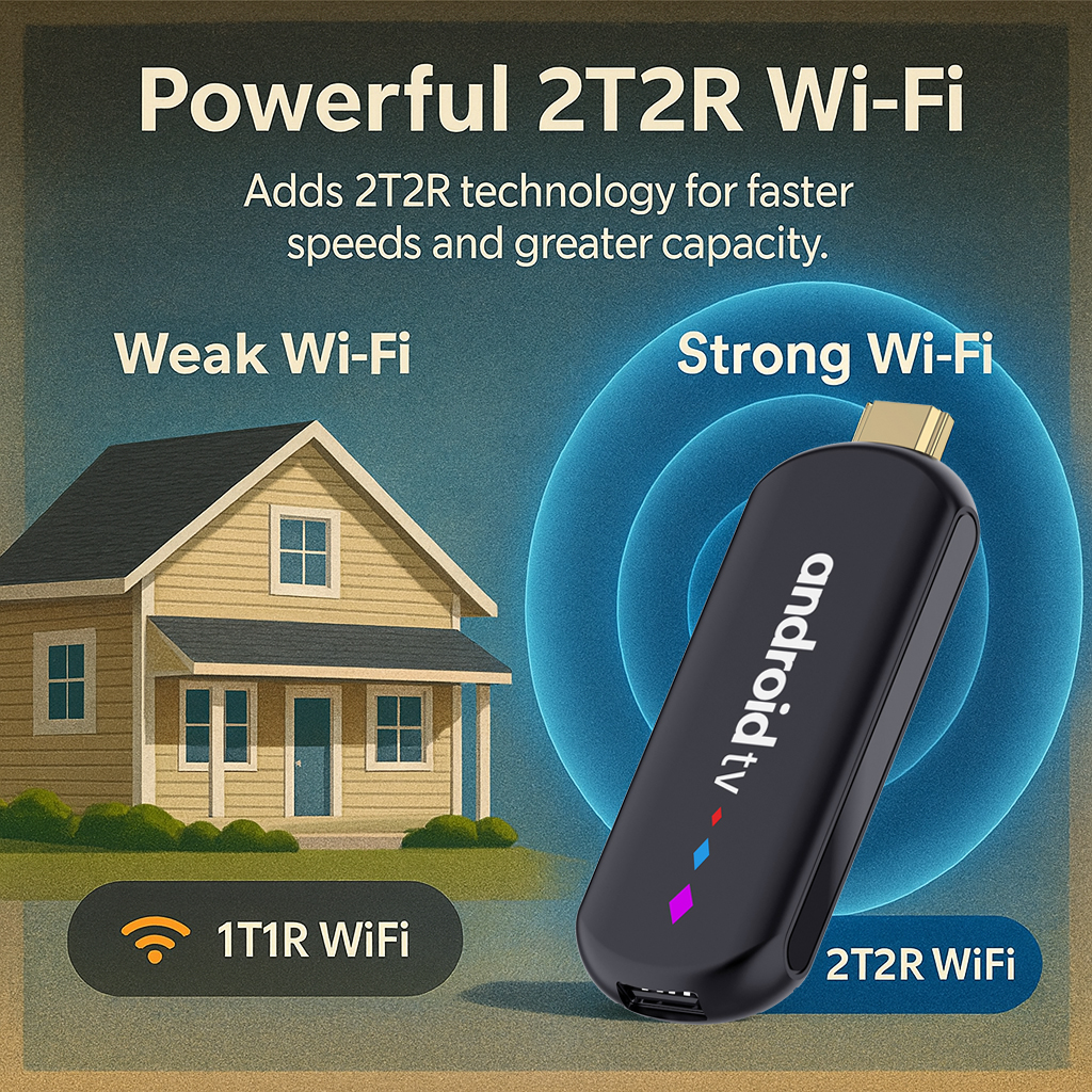With support for dual-band 2.4G/5G WiFi and Bluetooth 5.4, this Android streaming stick ensures